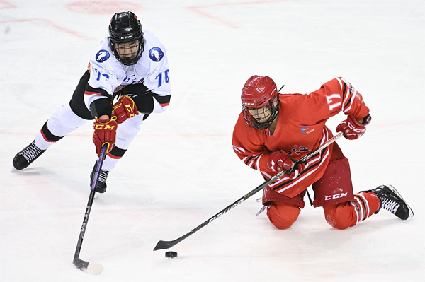 比赛结束后,失望的神情挂在山东姑娘们的脸上,但队友们还是拍着李金恣鼓励。黑龙江队则拥抱在一起,王欣然流下了激动的泪水。